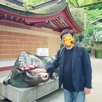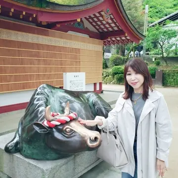 この御神牛像の頭を撫でると知恵を授かるという言い伝えがあるとのこと!