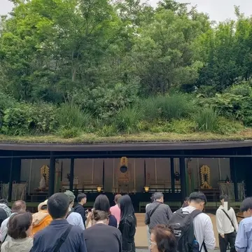 仮とは言え、屋根に見事な緑を湛え、豊かな自然にマッチした素晴らしい空間でした。