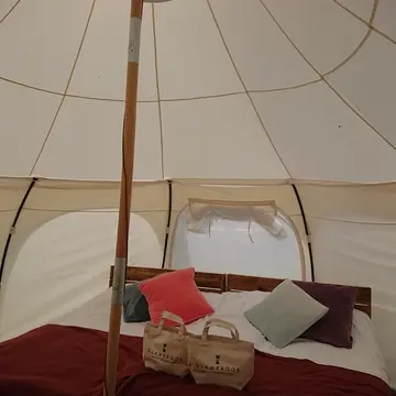 勿論事前に知っているのですがホントにテント内に普通にベッドがあり👀