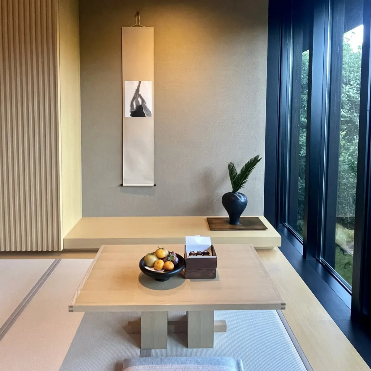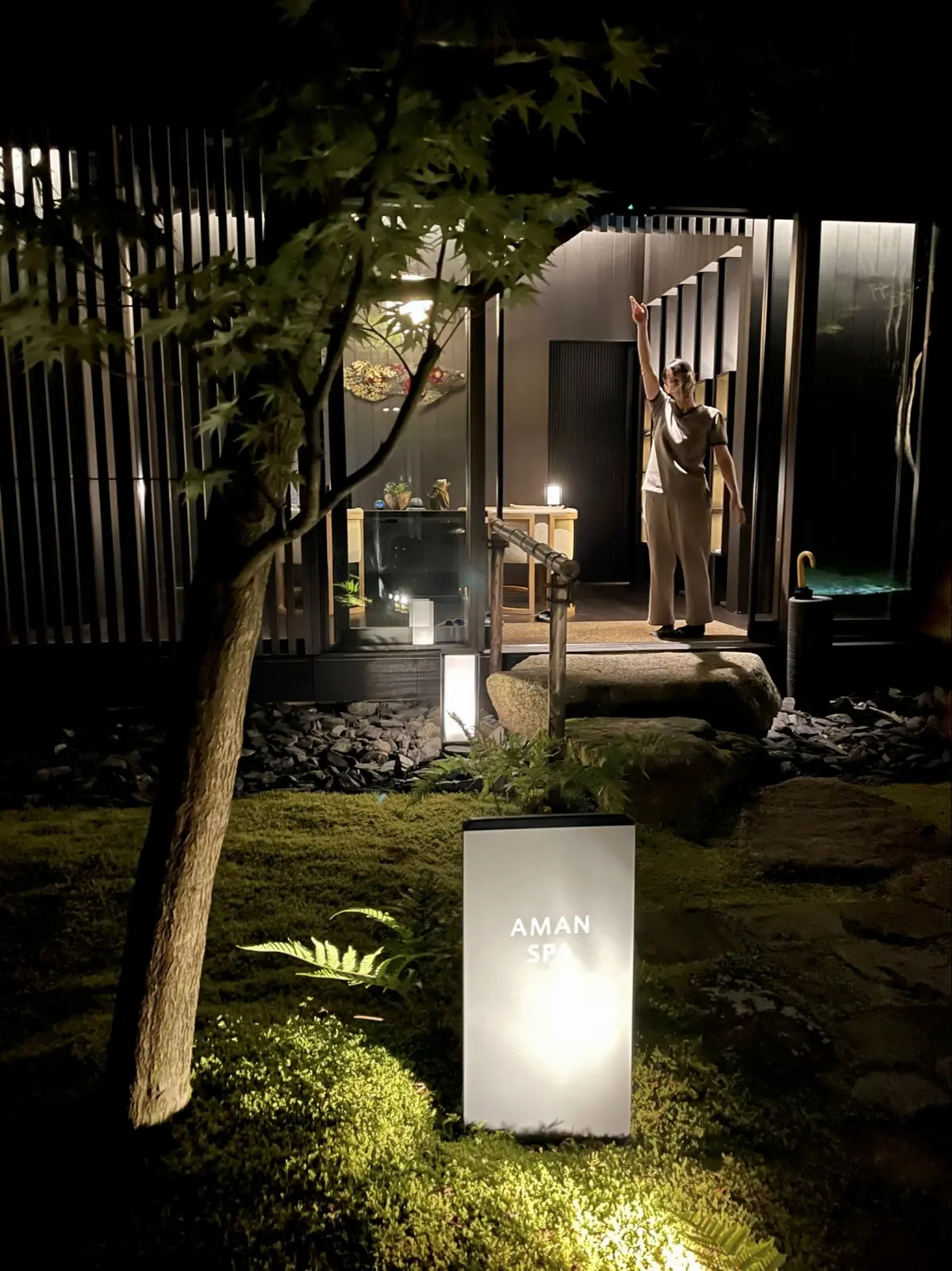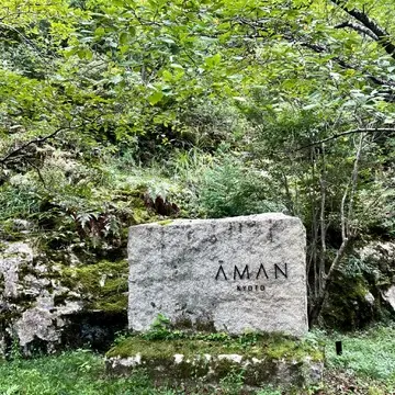 住宅地を抜けると森の入り口とも思える場所にAMANの印が。京都の中心地から約30分ほどでこんなに広大な敷地にホテルがあるなんて。