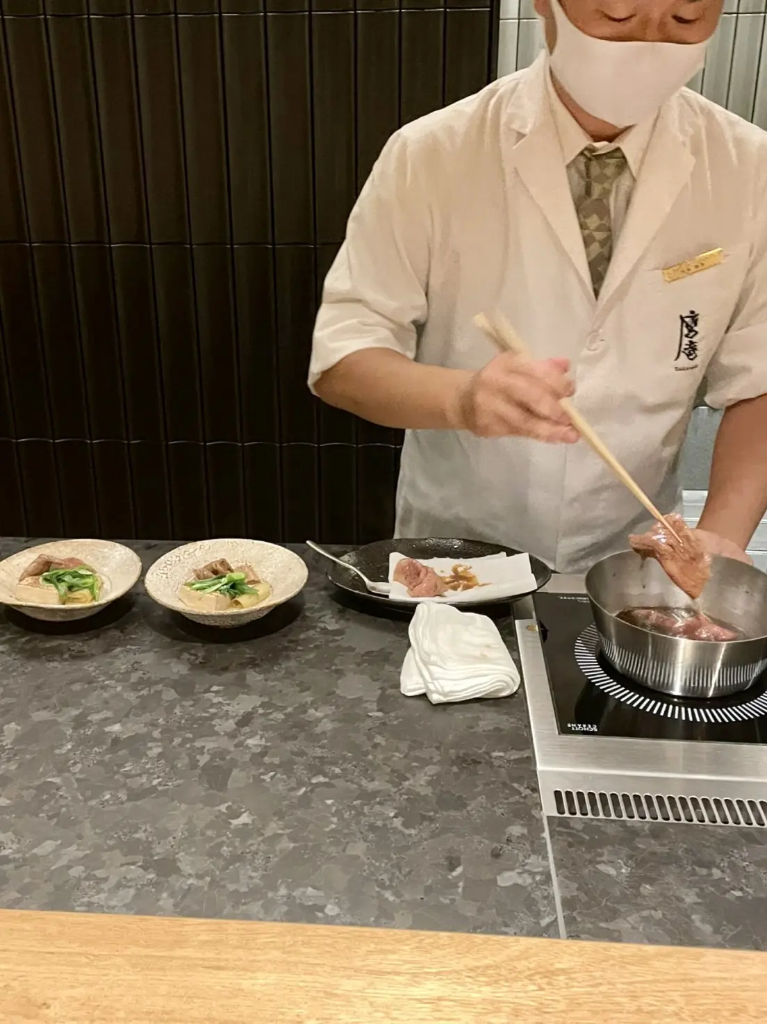 夕食はお肉の懐石料理『鷹庵』さんで。