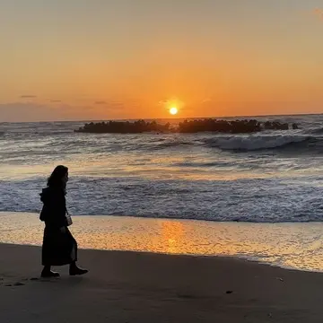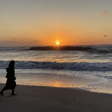 目の前が砂浜なので、迫力を求めて(笑)水平線に沈む夕陽を見に出かけました💛