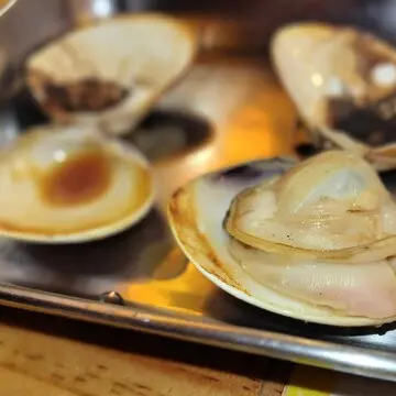蛤の浜焼きが出てくるまでの時間も、まだまだ、いろいろなものに興味津々の夫💦