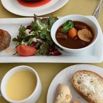 私達はビーフシチューとハンバーグが一皿に入ったペアプレートと、ドリアをチョイス。