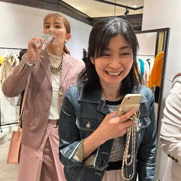 胸元はミキモトのネックレス