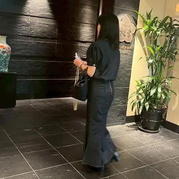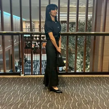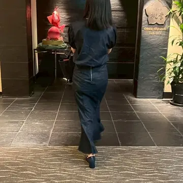 スカートはマーメイド。タイトなシルエットなのでちょっとお腹周りが気になりますが、お気に入りのセットアップの一つです。