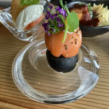 クジェール・ド・カカオ サーモンとアボカド燻製黒胡椒