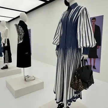 会場内では、ロエベの歴史から始まり、アトリエで使われている職人の道具や、バッグの製法、アートのような作品たち、そしてランウェイを彩った衣装まで、ブランドのすべてを垣間見ることができます。
