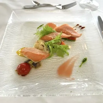 船内で景色を眺めながらいただくフレンチランチもとても美味しく、話も弾みます!