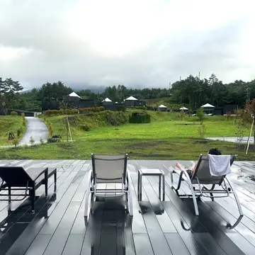 サウナの後に屋外で涼むことができます。 富士山が見えなかったのが、残念!