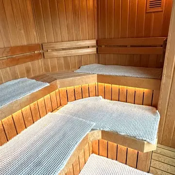 到着日は台風の影響で雨が降っていて、テラスのサウナは入れませんでしたが、お部屋とは別に貸切温泉とサウナがあるので、そちらを使わせていただきました。