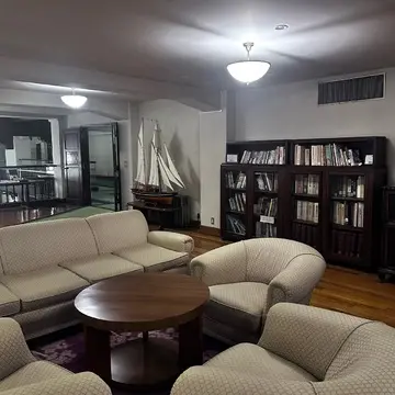 その先には、歴史を感じさせる暖炉のあるロビーが。