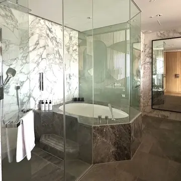 大理石のバスタブもとても素敵でしたが、今回は温泉があまりにも心地よくて、バスタブは使わず仕舞いに。