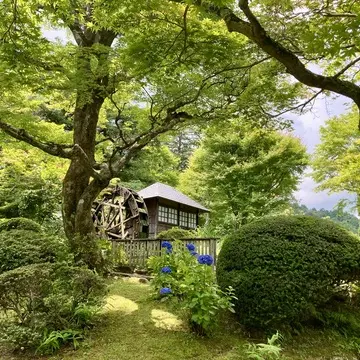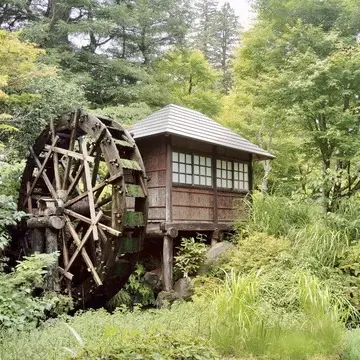 水車が現れて だんだん日本庭園の雰囲気に。