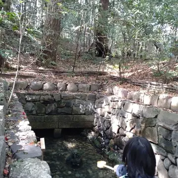 池の中にある石に三度、水をかけ美肌祈願