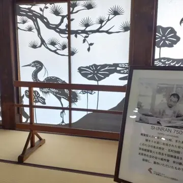 2019年親鸞聖人750年の御遠忌に際し、寺から依頼を受け製作した切り絵が今回、特別展示されています。