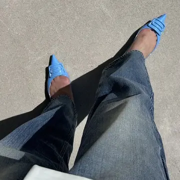 お天気の良い日にはデニムとブルーパンプスがとても相性よく、映えます。