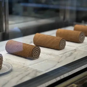 この渦模様の美しさ。生地の厚さとサンドされたバタークリームは計算されているそうです。目で見て美味しく頂くこと、最高に幸せです。