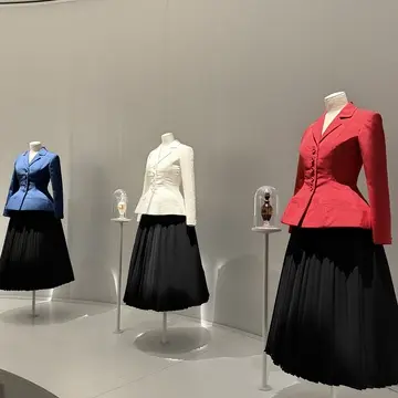 フランス国旗と同じブルー、ホワイト、レッドの3色の「バー」ジャケットスタイルのコレクションに始まり、クチュリエの世界の美しさにはいつも、目を奪われます。