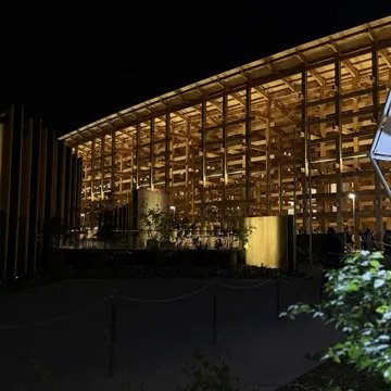日本人建築家である永山祐子氏が考案された組子ファサードが見事に美しく、夜は特にその姿がより際立っておりました。