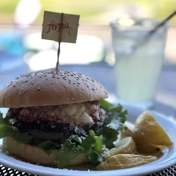 半日かけてのラフティングの後は、お店の2階にあるカフェで、オリジナルハンバーガーを頂きました。