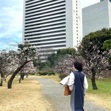 平日の午後は、来園者もまばら。おかげで、ゆっくり回遊式泉水庭園を回って、梅や早咲きの桜も楽しみました。