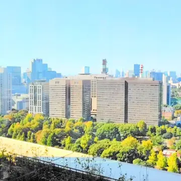 広く開けた空の青と皇居の緑のコントラストが存分に楽しめます。