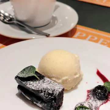 チョコレートブラウニーとバニラアイス。
