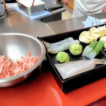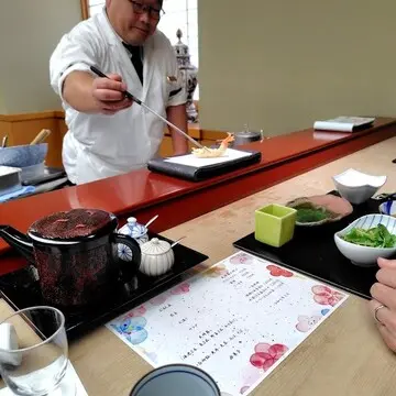 “きす”や”桜エビのかき揚げ”の食べ方、素材についてのお話を聞き、料理人さんの細やかな手仕事を拝見しながら、一品一品ゆっくりと堪能することができました。