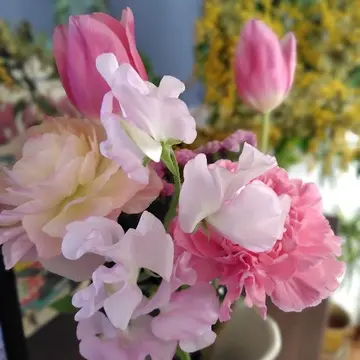 結婚記念日の前日に、春の花をサプライズでいただきました♪