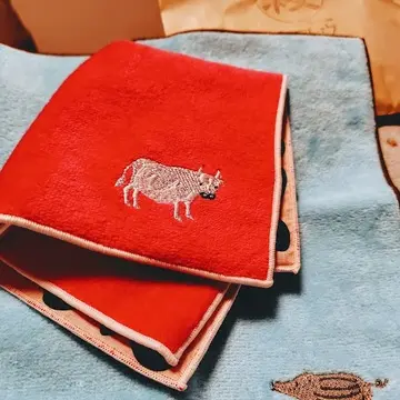 二人してイノシシと牛で、ちょっとゴツ目の干支だけど、刺繍は可愛いですよね。