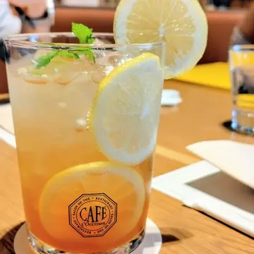 私が注文したのは、夏の暑さ疲れに効きそうなハニーレモンティーソーダと旬フルーツのガトーマルシェ。