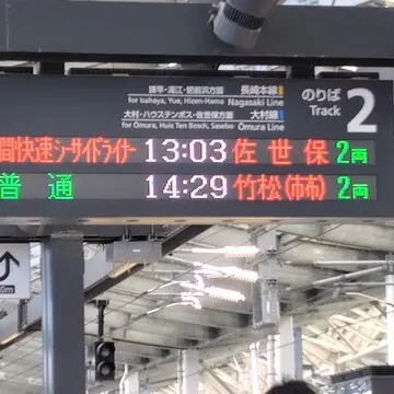 13:03 佐世保行きの快速「シーサイドライナー」に無事乗車。楽しみにしていたハウステンボスへ向かいます♪
