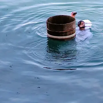 足の先までまっすぐに垂直に潜ったかと思うと、見事に貝を獲って戻ってこられます。