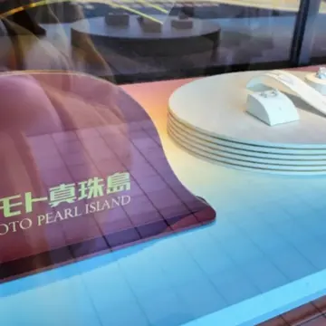 「真珠王、御木本幸吉が真珠養殖場を創設した多徳島が見えます」というアナウンス。
