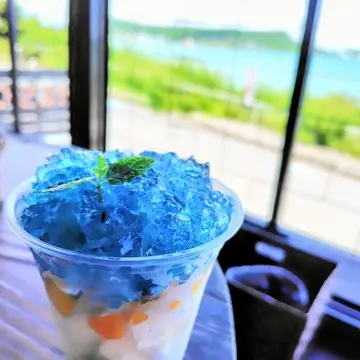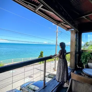 宮城島からは浜比嘉島大橋を渡り、目的のオープンテラスカフェraise244.へ。