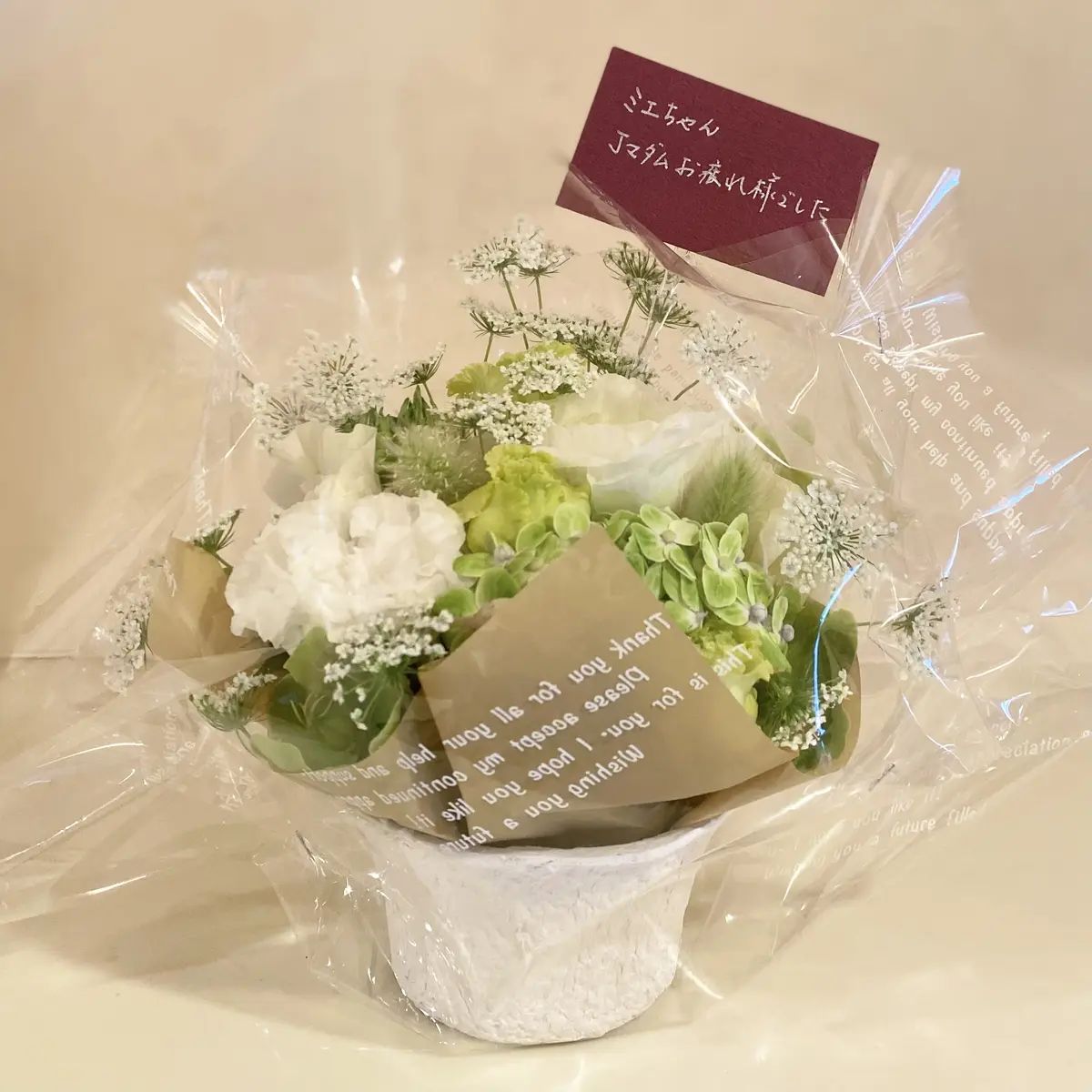 メッセージプレートとお花のプレゼントを