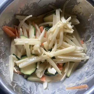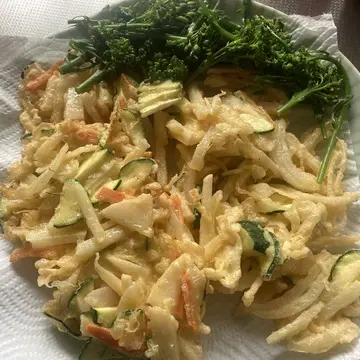 かき揚げ。人参、玉ねぎ、ズッキーニをプラスしました。