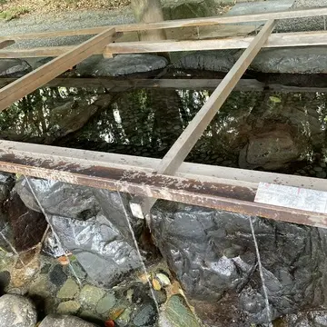 手水舎は滝のように流れています。