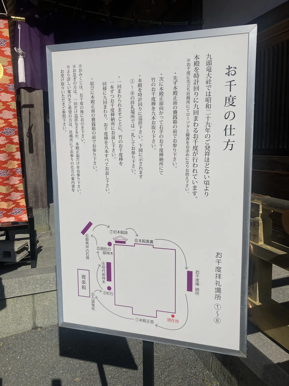 九頭竜弁財天大神様の参拝の仕方が社の横に掲載されていますのでそちらを参考にお唱えください。