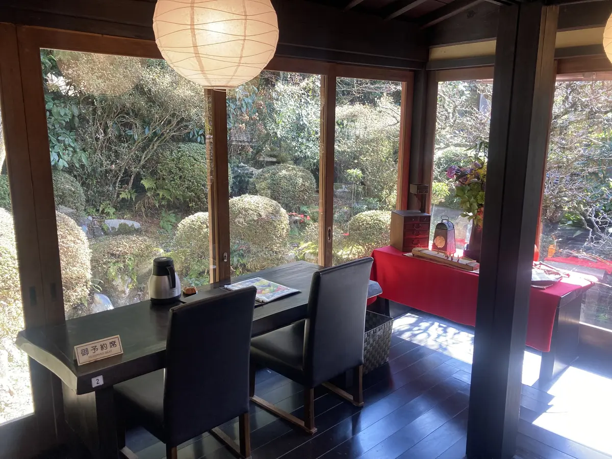庭を眺めてのお席は予約をお勧めします。