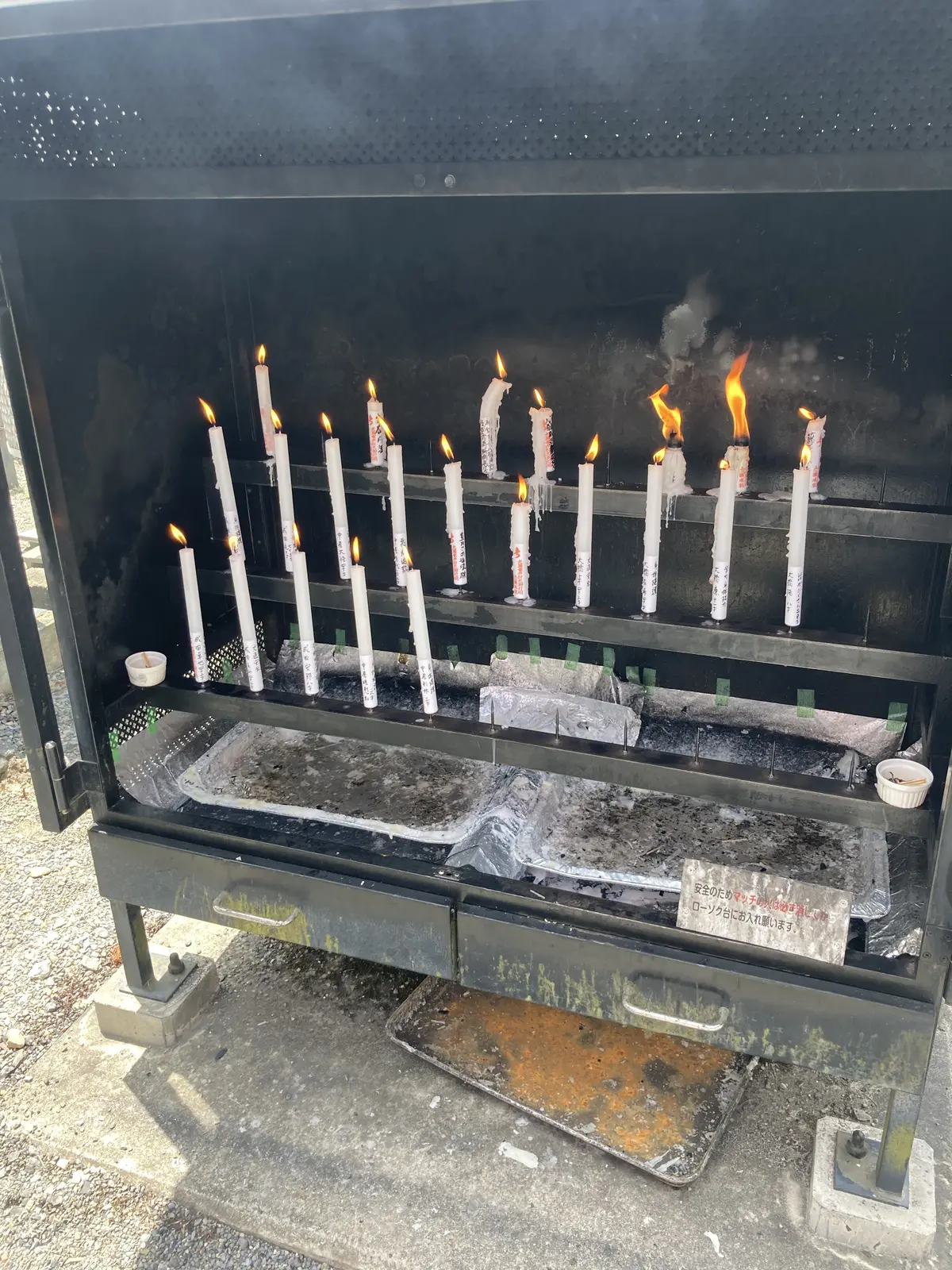 社務所にてロウソクとお線香を購入しお供えさせていただきます。
