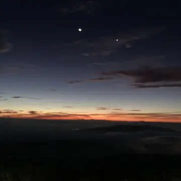 月と星が太陽の光を受け始めています。