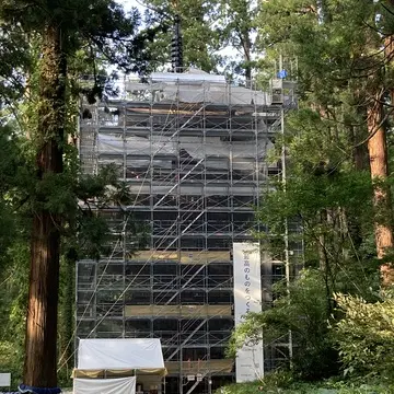 国宝の羽黒山五重塔は改修中でした。