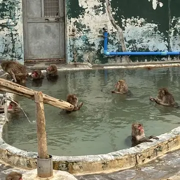 何時もニュースで見かけるお猿さんの温泉浴光景です。気持ちよさそうです。