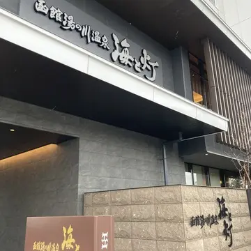 今回利用した函館湯の川温泉海と灯り 。12階の露天風呂からは津軽海峡の絶景が見られます。
