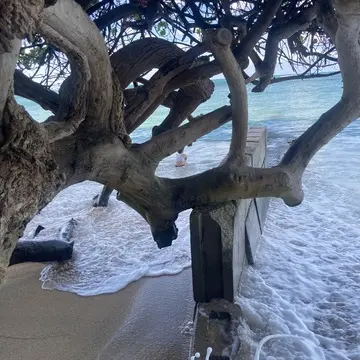 パワースポット‼️ワイキキビーチの『癒しの聖なる海カヴェへヴェヘ』海底から淡水が湧き出ていて海水と淡水が混じり合う場所。 ハレクラニホテルとアウトリガー・リーフ・ワイキキ・ビーチホテルの真ん中。🌲を目印に探してね。