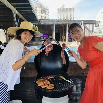 ちょっぴりアクセントをつけたくて、コサージュ作家さんの夏らしい大きめコサージュを付けています♪
