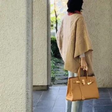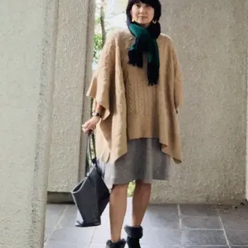 濃ベージュのポンチョは