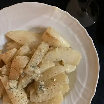 冷蔵庫に残っていた生クリームとブルーチーズを仕上げに加えたところ
